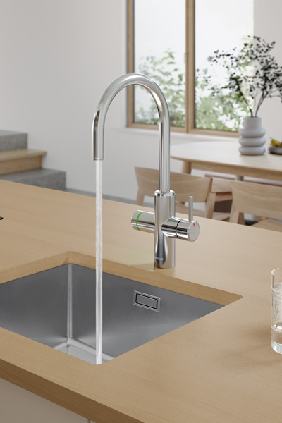 Mit dem intuitiven Drehregler wählen Sie im Handumdrehen zwischen frisch gefiltertem Wasser, prickelnder Erfrischung oder kochendem Wasser. Einfach drehen, klicken – und genießen. So einfach kann individueller Geschmack sein.